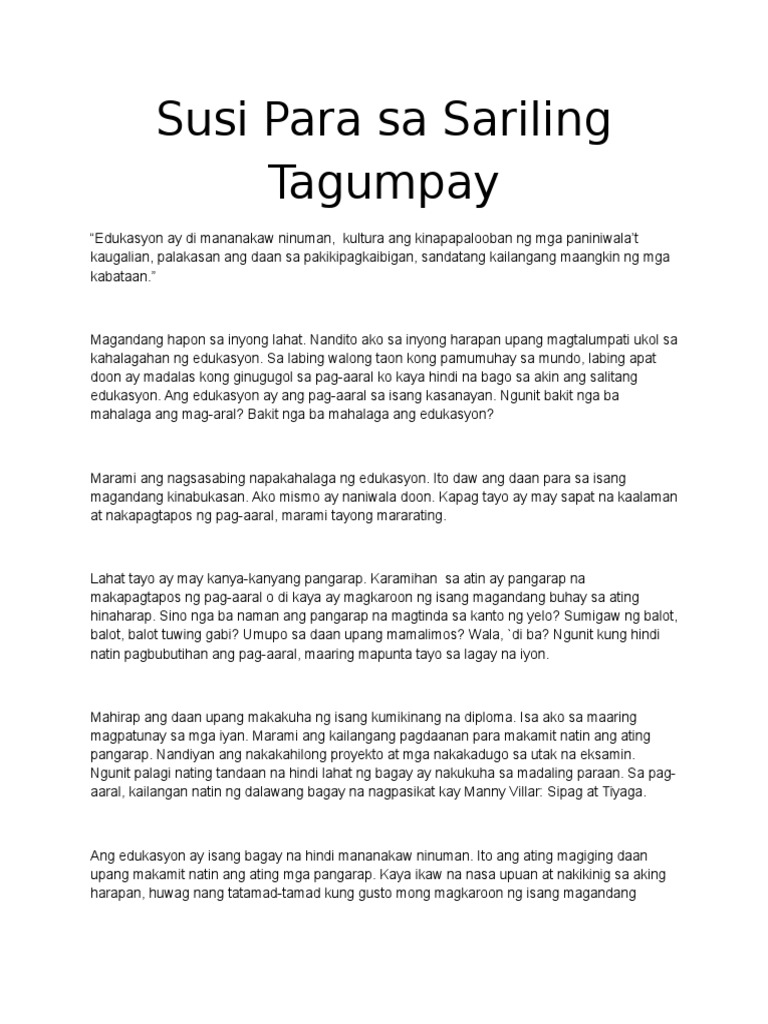 Susi Para Sa Sariling Tagumpay Pdf