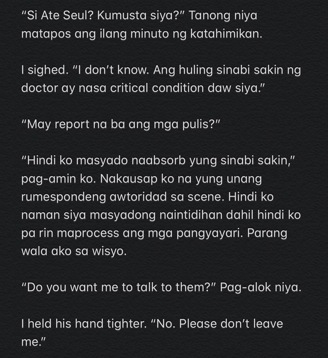 At kumuha ka ng isang topic na gagawin mong balita at gumawa ng isang copy para sa buong topic. Nalaman niya kung paano namatay ang iba niyong mga ka-brad sa frat at naintindihan niya kung ano ang nangyayari. Its embarrassing but it is what it is I guess lalot na sa school ko dati focus talaga ang english kaysa sa filipino.